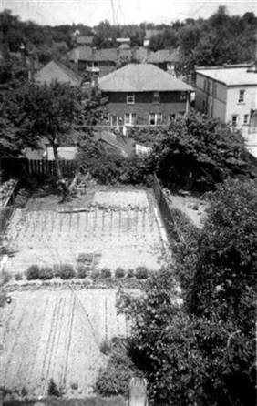 photo was taken from the third floor window. The rows of vegetables and flowers